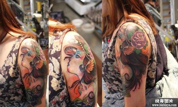 大臂纹身女头像图案图片_臂部纹身图案大全_纹身图吧
