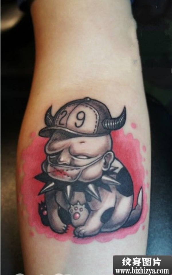个性嘻哈小狗手臂刺青图案图片_臂部纹身图案大全_纹身图吧