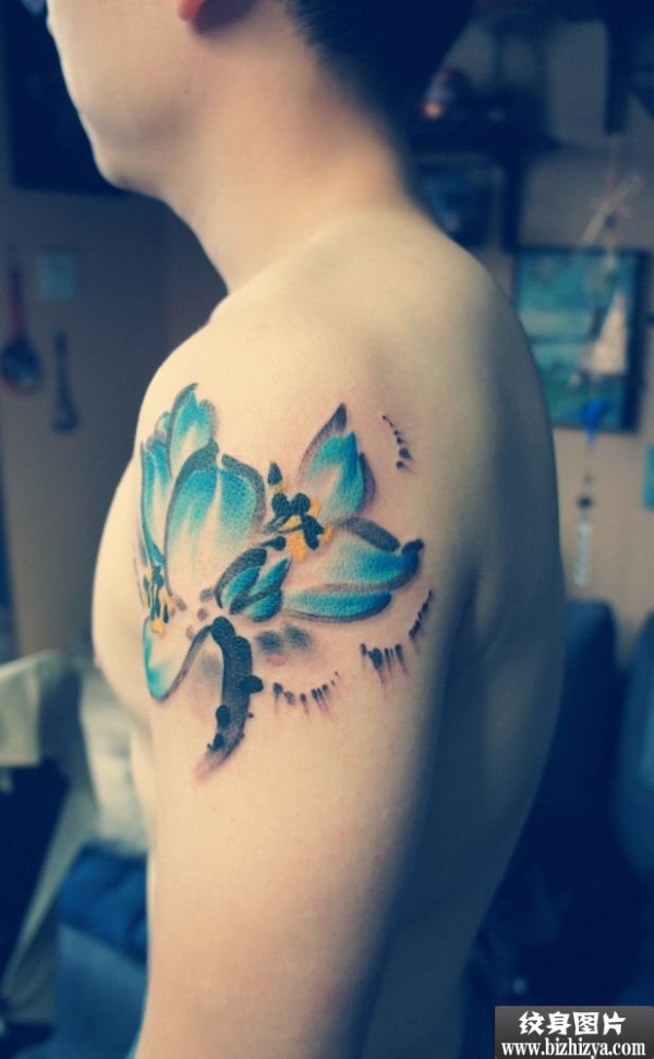 水墨风莲花手臂纹身图案图片_臂部纹身图案大全_纹身图吧