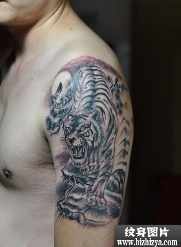 霸气下山虎手臂纹身图案图片_臂部纹身图案大全_纹身图吧