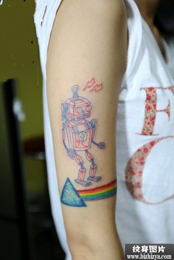 彩虹机器人可爱手臂纹身图案图片_臂部纹身图案大全_纹身图吧