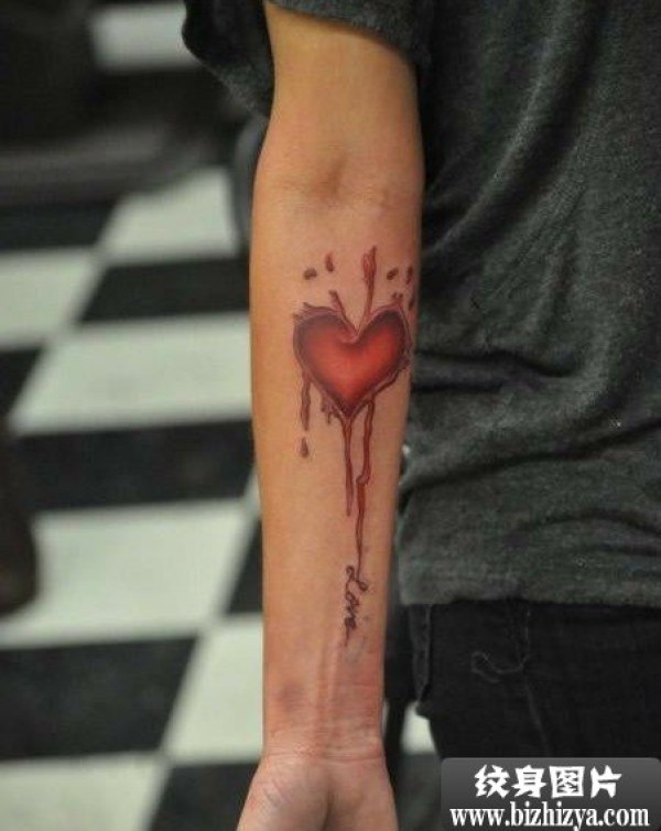 唯美手臂在滴血心脏图案图片_臂部纹身图案大全_纹身图吧