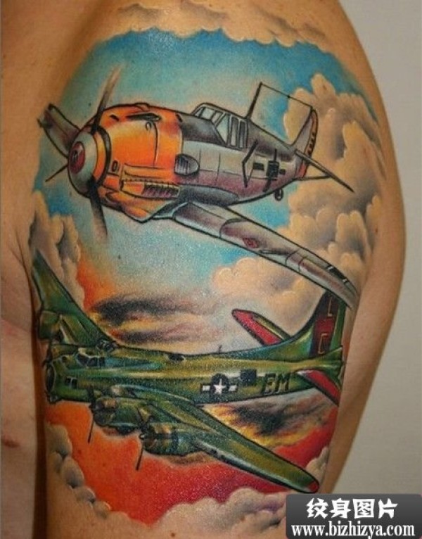 手臂时尚飞机彩绘纹身图案图片_臂部纹身图案大全_纹身图吧