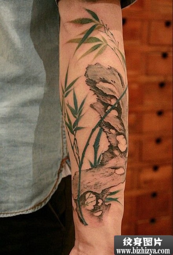 手臂艺术水墨竹子图案图片_臂部纹身图案大全_纹身图吧