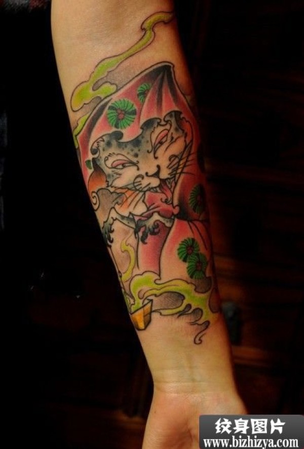 手臂彩色招财猫纹身_臂部纹身图案大全_纹身图吧