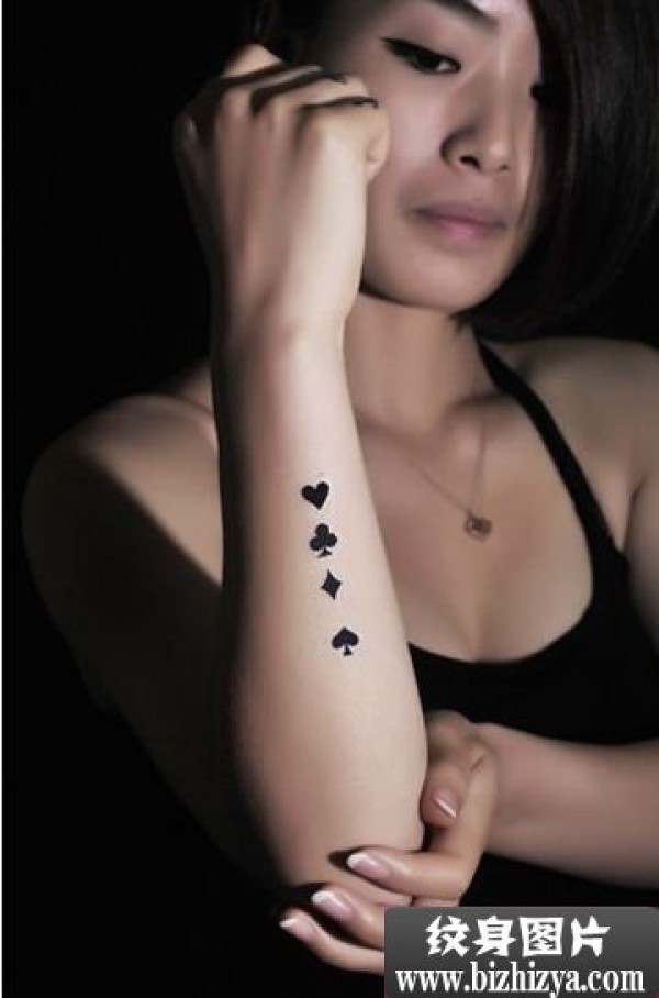 手臂扑克黑桃和黑梅花纹身图案图片_臂部纹身图案大全_纹身图吧