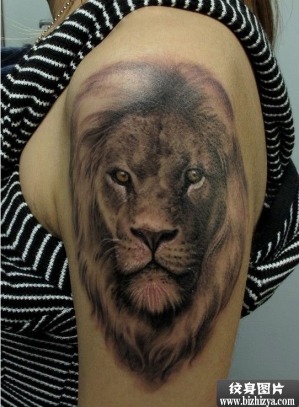 狮子头像手臂纹身图案图片_臂部纹身图案大全_纹身图吧