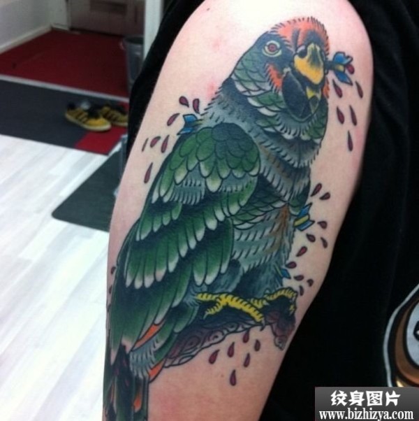 彩色鹦鹉手臂纹身图案图片_臂部纹身图案大全_纹身图吧