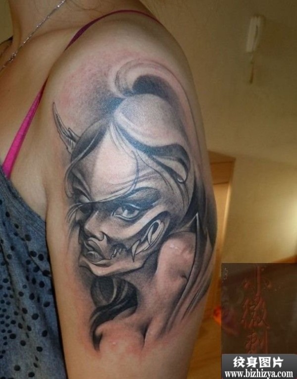 手臂创意兽面女郎纹身图图案图片_臂部纹身图案大全_纹身图吧