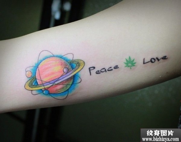 个性彩色星球手臂刺青图案图片_臂部纹身图案大全_纹身图吧