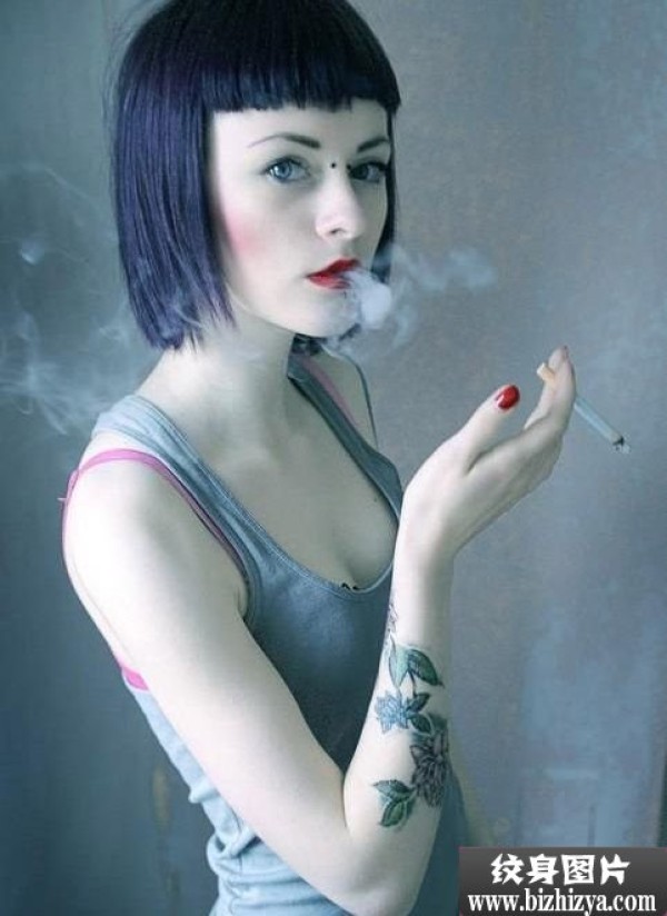 抽烟颓废美女秀手臂纹身图案图片_臂部纹身图案大全_纹身图吧
