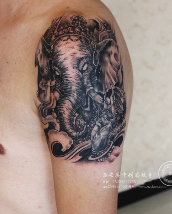 关中刺客大臂象神纹身西安关中刺客纹身_臂部纹身图案大全_纹身图吧