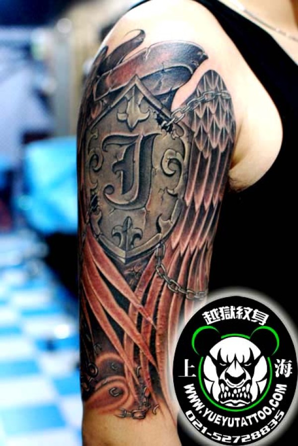 手臂羽翼纹身图案上海越狱纹身店作品_臂部纹身图案大全_纹身图吧