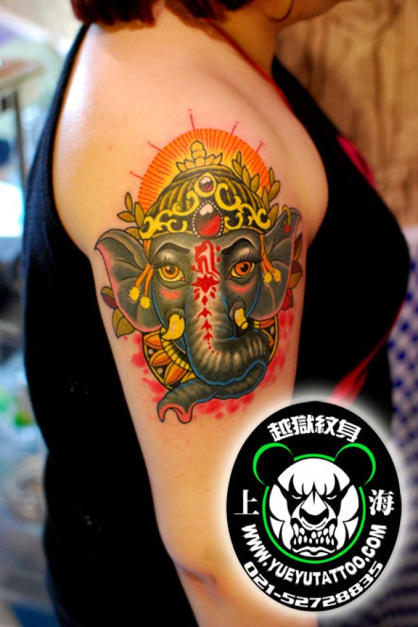 手臂彩色象神纹身图案_臂部纹身图案大全_纹身图吧