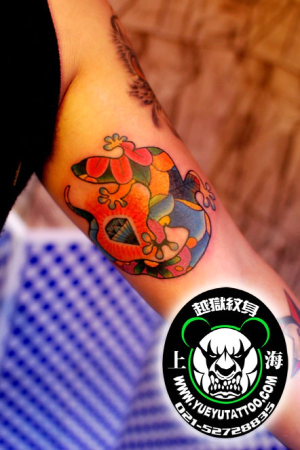 手臂彩色壁虎纹身图案_臂部纹身图案大全_纹身图吧