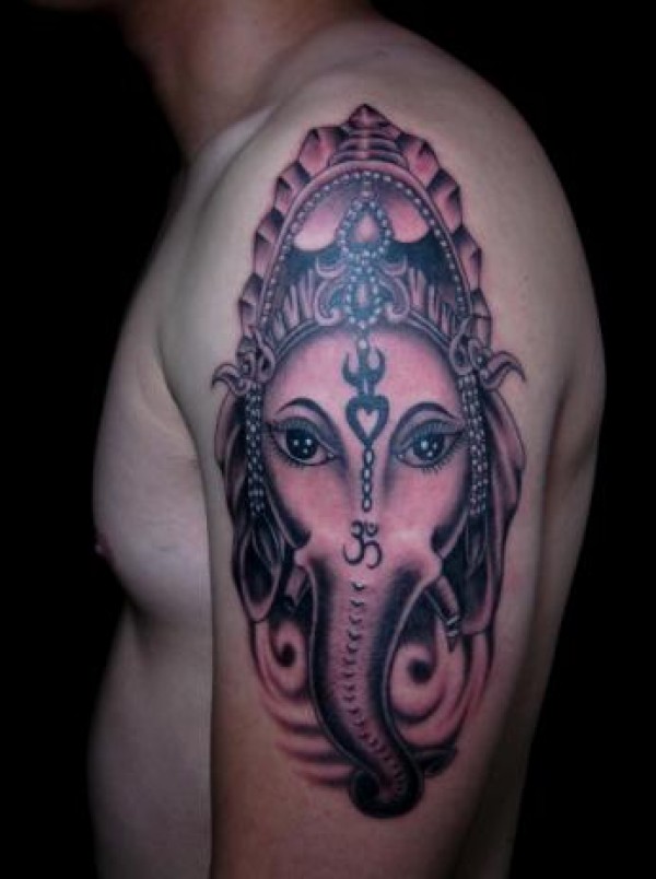 男人大臂一款潮流唯美的象神纹身图案_臂部纹身图案大全_纹身图吧