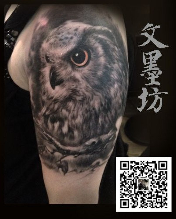 男人大臂一款霸气时尚的猫头鹰纹身图案_臂部纹身图案大全_纹身图吧