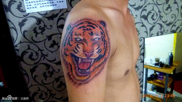 男人大臂一款霸气个性的老虎纹身图案_臂部纹身图案大全_纹身图吧