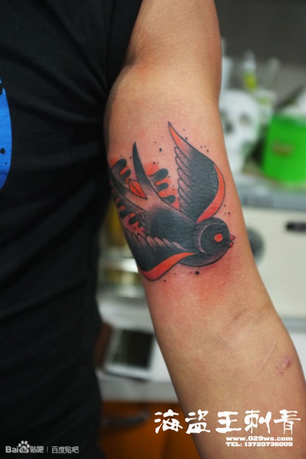 男人小臂一款个性时尚的燕子纹身图案_臂部纹身图案大全_纹身图吧