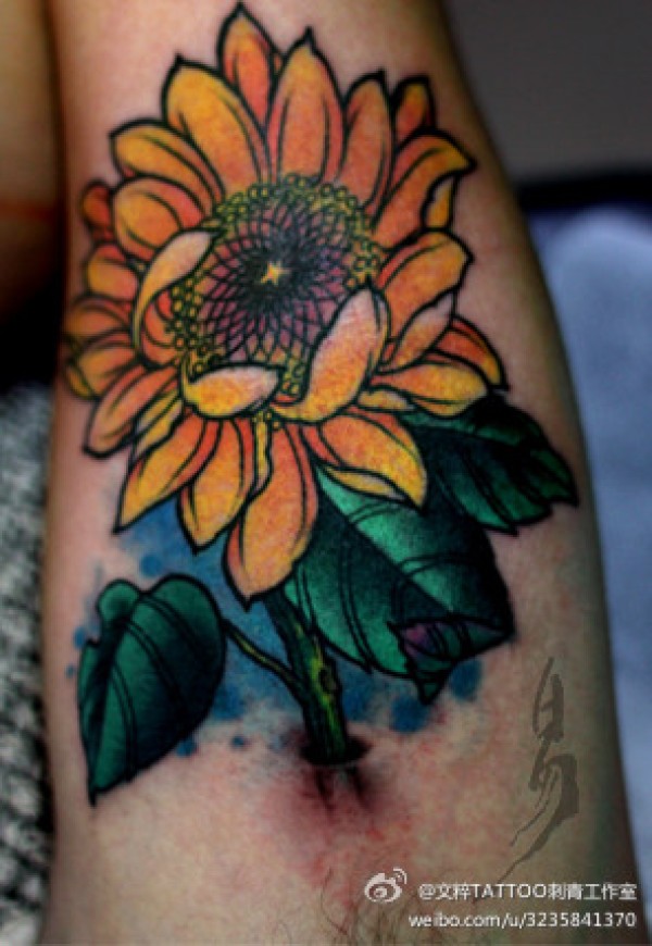 手臂唯美好看的向日葵花纹身图案_臂部纹身图案大全_纹身图吧