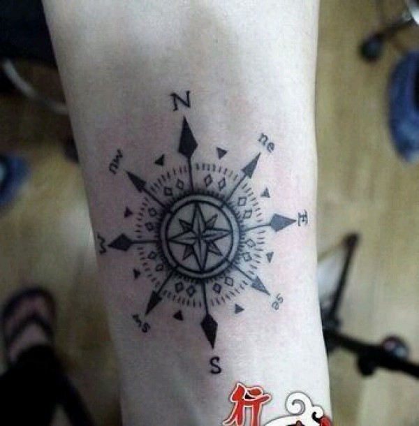 小臂一款时尚好看的指南针纹身图案_臂部纹身图案大全_纹身图吧