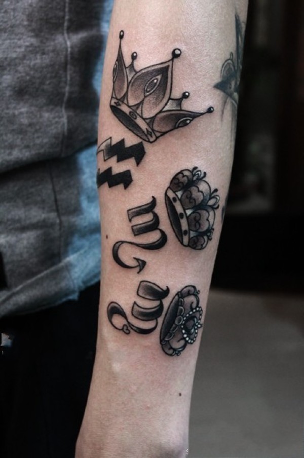 手臂小巧时尚的黑灰皇冠纹身图案_臂部纹身图案大全_纹身图吧