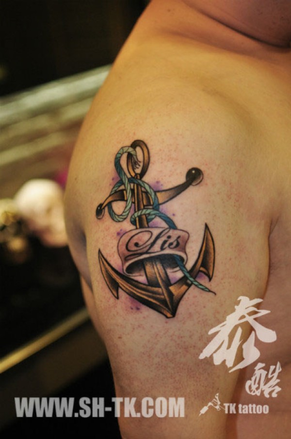手臂精美时尚的船锚纹身图案_臂部纹身图案大全_纹身图吧