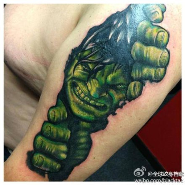 手臂潮流经典的一款绿巨人纹身图案_臂部纹身图案大全_纹身图吧