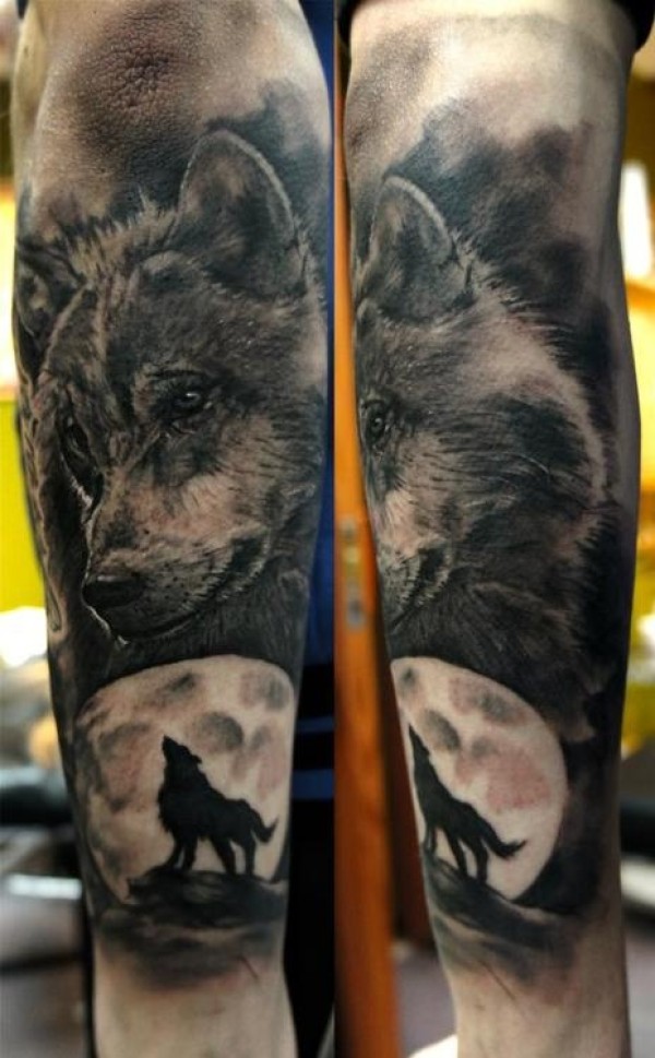 手臂时尚很酷的黑灰狼头纹身图案_臂部纹身图案大全_纹身图吧