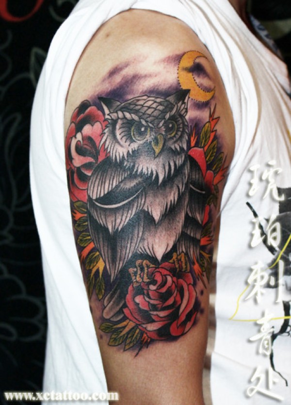 手臂潮流很酷的猫头鹰纹身图案_臂部纹身图案大全_纹身图吧