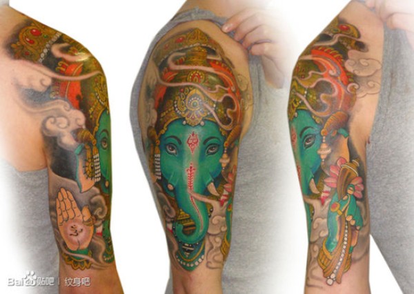 手臂很酷经典的象神纹身图案_臂部纹身图案大全_纹身图吧