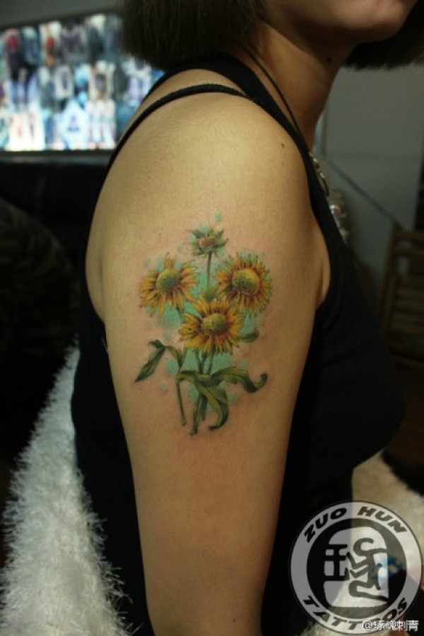手臂好看漂亮的向日葵花纹身图案_臂部纹身图案大全_纹身图吧