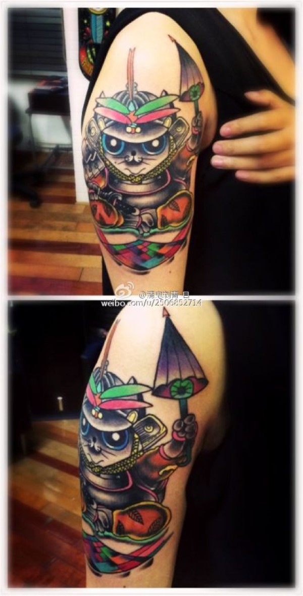 手臂彩色招财猫纹身_臂部纹身图案大全_纹身图吧
