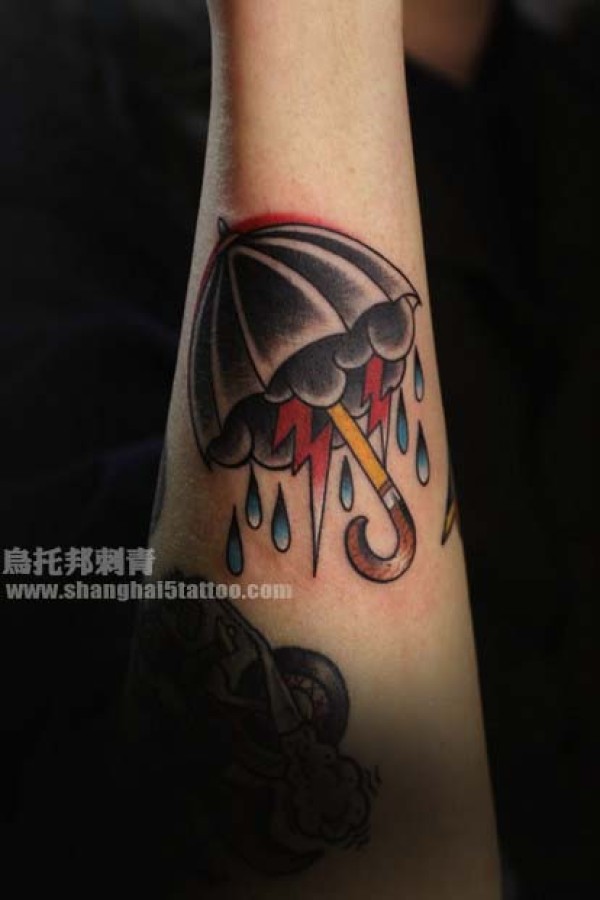 手臂时尚潮流的雨伞乌云闪电纹身图案_臂部纹身图案大全_纹身图吧