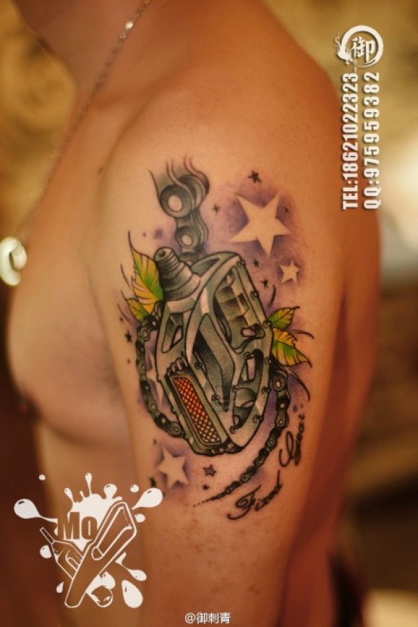 手臂一款很帅潮流的死飞脚踏纹身图案_臂部纹身图案大全_纹身图吧