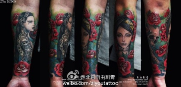 手臂漂亮潮流的插画美女纹身图案_臂部纹身图案大全_纹身图吧