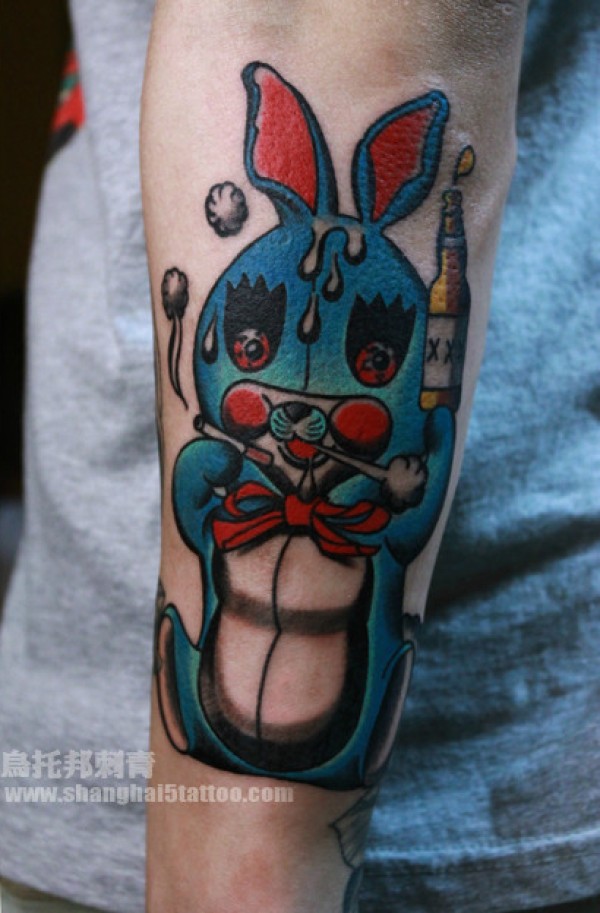 手臂一款抽烟喝酒的兔子纹身图案_臂部纹身图案大全_纹身图吧