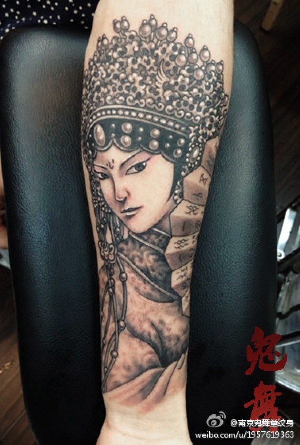 手臂漂亮经典的美女花旦纹身图案_臂部纹身图案大全_纹身图吧