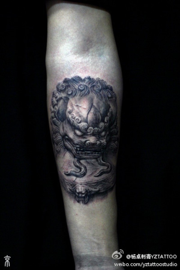 手臂时尚经典的石狮子纹身图案_臂部纹身图案大全_纹身图吧