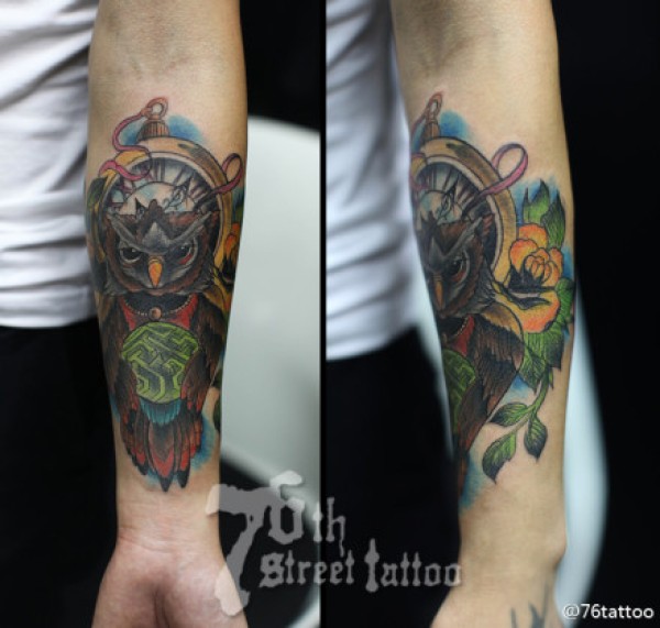 手臂时尚很酷的猫头鹰纹身图案_臂部纹身图案大全_纹身图吧