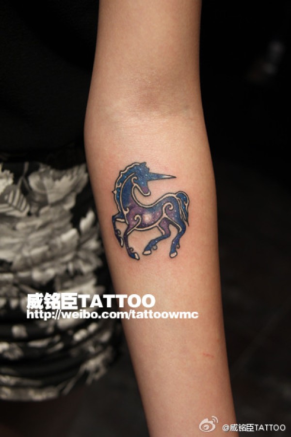 手臂小巧潮流的星空独角兽纹身图案_臂部纹身图案大全_纹身图吧