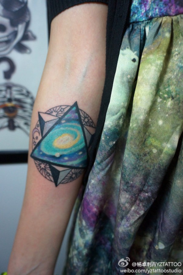 手臂精美时尚的彩色星空三角纹身图案_臂部纹身图案大全_纹身图吧