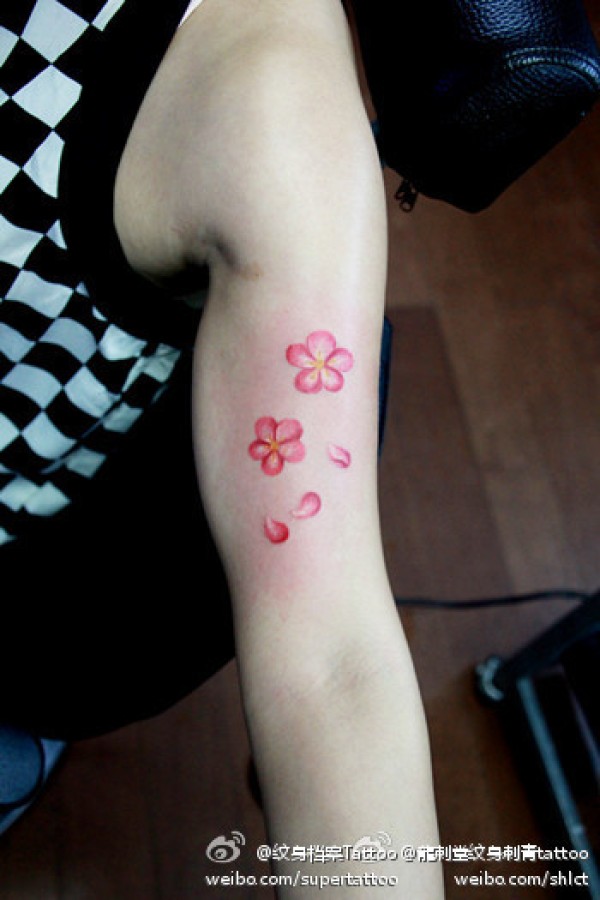 手臂樱花纹身_臂部纹身图案大全_纹身图吧