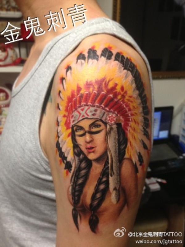 手臂漂亮的印第安美女纹身图案_臂部纹身图案大全_纹身图吧