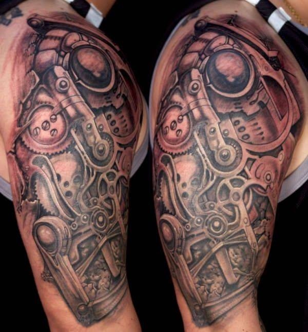 分享一款霸气潮流的大臂机械纹身图案_臂部纹身图案大全_纹身图吧