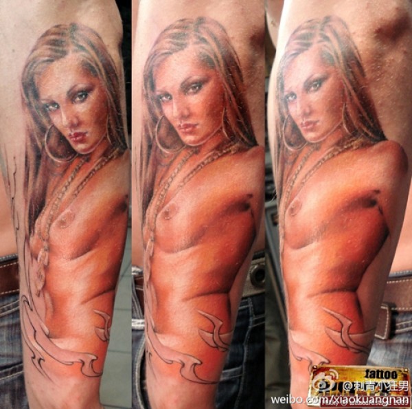 手臂写实漂亮的一款彩色美女纹身图案_臂部纹身图案大全_纹身图吧