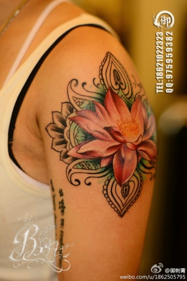 手臂时尚潮流的彩色莲花纹身图案_臂部纹身图案大全_纹身图吧