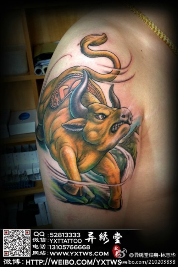 手臂时尚很酷的大黄牛纹身图案_臂部纹身图案大全_纹身图吧