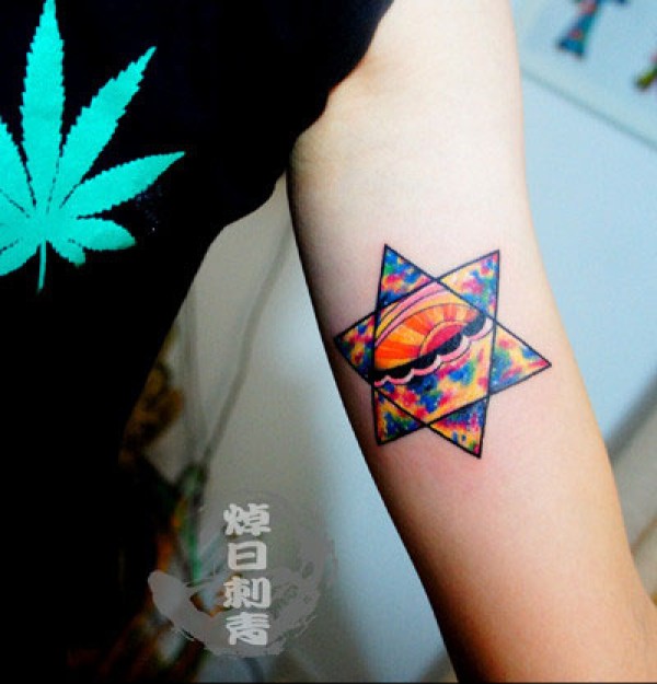 手臂彩色五角星纹身_臂部纹身图案大全_纹身图吧