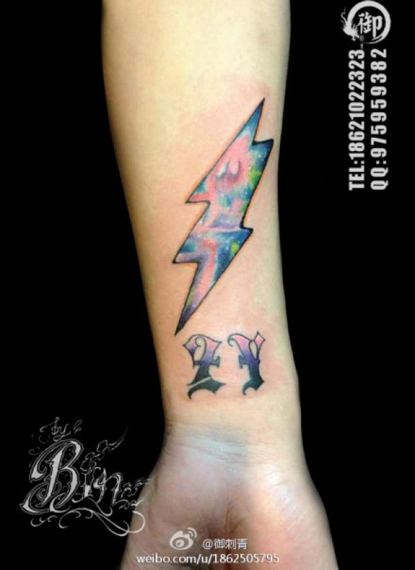 手臂时尚精美的星空闪电纹身图案_臂部纹身图案大全_纹身图吧